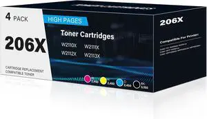 206X Toner Cartridges M283fdw M283cdw Toner Compatible for HP 206X for HP Color Laser Jet Pro M255dw M255nw MFP M283fdw M283cdw M282nw M283fdn Printer, Black/Cyan/Yellow/Magenta