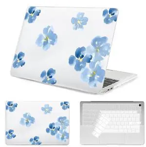Seorsok Compatible with MacBook Air 13 Inch Case 2022 2021 2020-2018 Release A1932 A2179 M1 A2337,Elegant Blue Blooming Floral Aesthetic Plastic Hard Case with Transparent Keyboard Cover,Crystal Clear