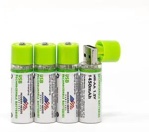 Survival Frog EasyPower USB AA Rechargeable Batteries -1.2V/1450 mAh Long Lasting Double A USB Co. - (4 Pack)