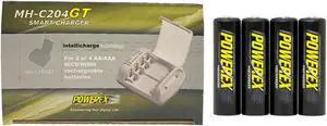 Powerex MH-C204GT AA / AAA Smart Battery Charger & 4 AAA NiMH AccuPower Micro Batteries (1200 mAh)