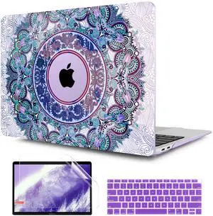 TWOLSKOO Case for MacBook Air 13.3 Inch (Old Version 20182021, Models: M1 A2337, A2179, A1932) Hard Shell Case with Screen Protector & Keyboard Cover, Purple Mandala