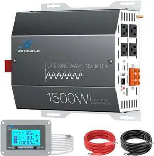 1500 Watt Pure Sine Wave Inverter 12v DC to 110v 120v AC Converter,3000W Peak Power with 4 Outlets,USB Port,Type-C,Remote Control LCD Display for Truck, RV, Vehicles, Solar Off-Grid
