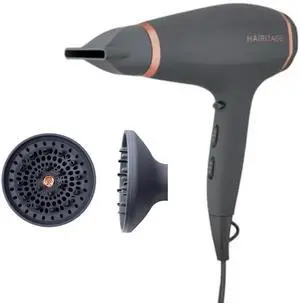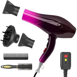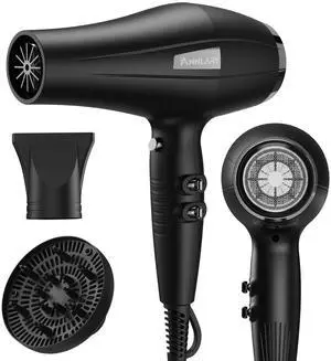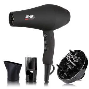 Hair Dryer, 1875W, 3 Heat & 2 Speed, with Diffuser, with Concentrator, Ionic Technology & Infrared - Black, Detachable Air Intake, Hanging Strap, Non-Foldable, 125V, JINRI-104- Brand: JINRI