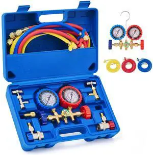 HVAC Gauges with Hoses, AC Manifold Gauge Set R134A R410A R404A R22 Refrigerant Gauges