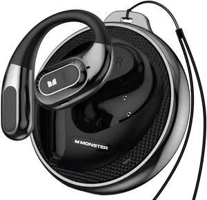 Monster Open Ear AC360, Wireless Bluetooth Rotary Earphone, with Lanyard, Upgraded Bluetooth 6.0, Touch Control, 24h Long Battery Life, IPX5 Waterproof,Long-Lasting Wear Without FatigueBlack