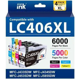Starink LC406 LC406XL Ink Cartridges Replacement for Brother Printer LC406XL 406 Compatible with MFC-J4335DW MFC-J5855DW MFC-J6555DW MFC-J4535DW MFC-J6955DW MFC-J4345DW MFC-J5955DW, 4 Pack BKCMY