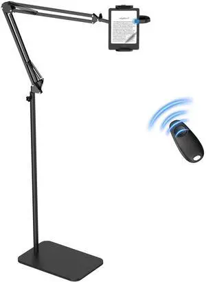 Floor Tablet Holder for Kindle with Remote Page Turner, Kindle Stand for Reading in Bed on Paperwhite Colorsoft Scribe E-reader, Lazy Arm Phone Mount for E-book Reading with Clicker Accessories