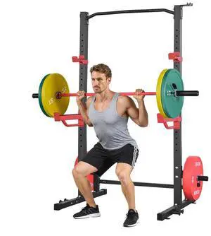 Vevor Power Cage Power Rack, Multifunctional Barbell Squat Rack with Adjustable Height, Home Gym Strength Training Workout Equipment with J-Hooks & More Fitness Attachment for Bench Press Pull-Up Dips