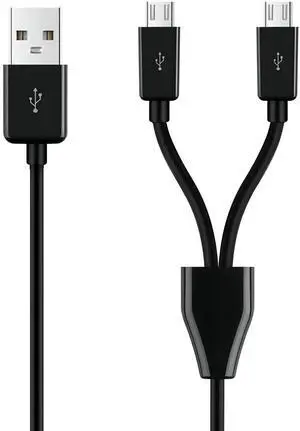 Aomoproing 2 in 1 USB A to Dual Micro USB Charging & Sync Adapter Cable, 0.2m Black