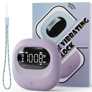 Vibrating Alarm Clock for Heavy Sleepers, Rechargeable 3000mah Portable Deaf Clock Bed Shaker for Bedroom Or Dorm, Dual Alarm 160-Day Standby Mini Alarm Clock for Teens, Adults, Purple