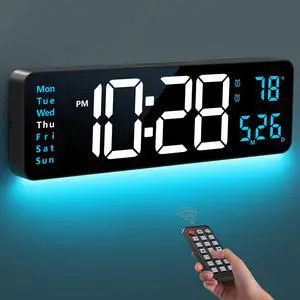 Digital Clock Large Display,11.5"Digital Wall Alarm Clock with Remote Control,LED Oversized Electric Clock with Calendar,12/24H,Adjustable Brightness Large Clock for Home Office Kitchen Bedroom