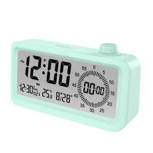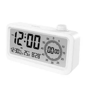 Features: 1. Plug in the device using the provided AC power adaptor. 2. To power on, press and hold the 'Power' button until the display lights up. 3. To set the alarm, press the 'Alarm' button and adjust the time using the '+' and '-' buttons. Choose your preferred wake-up mode and sound. 4. For the sleep sound machine, press the 'Sound' button to cycle through the 25 available sounds. Adjust the volume using the 'Volume' button. Set the sleep timer using the 'Timer' button. 5. To adjust the clock's brightness, use the 'Brightness' button. For the night light, press the 'Light' button to select from the 12 color options and adjust the brightness. 6. To stream audio via Bluetooth, enable Bluetooth on your device and pair it with the alarm clock. 7. To snooze, press the 'Snooze'...