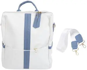 Women's Large Capacity PU Leather Backpack Purse, Soft Casual Lady Backpack with Adjustable Straps, Fashionable Contrast Color Design for Work Travel Shopping (Blue)