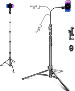 82" Phone Tripod Stand with Gooseneck, Remote and Phone Holder, Selfie Stick & Overhead Tripod for Recording/Cooking/Fitness/Vlog, Compatible with iPhone Android Samsung, Camera