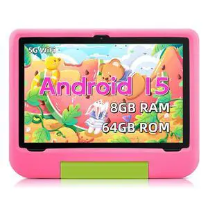 Kids Tablet,Android 15 Tablet with HD Display,10.1 inch,Parental Control & Kids Mode, Octa-Core, GMS Certified,20GB RAM 64GB ROM,1TB Expandable, 5000mAh Battery, Dual Camera, Protective Case,Pink