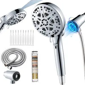 Filtered Shower Head with16 Stage Shower Filter Cartridge High Pressure 7 Spray Settings Shower Head Filter for Hard Water Removes Chlorine and Heavy Metals, Black
