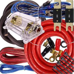 0 Gauge Audio Amplifier Installation Wiring Kit 3000W CCA with Fuse & RCA Complete Car Audio Power Cable Kit for Subwoofer and Speaker Install