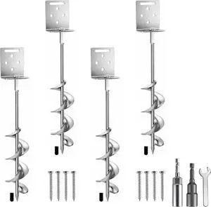 24" 4/6pcs Ground Anchors with L Bracket, Full Welded Shed Anchor, Trampoline Anchor Spiral Swingset Anchors for Mobile Home, Fence, Playset, Tent, Canopy, Carpor