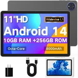 Android Tablet 11 Inch Android 15 Tablet with Case, Octa-Core, 16GB RAM 128GB ROM Expandable, 8000mAh, 1280X800 FHD Display, Dual Camera 5MP+13MP, GPS, Bluetooth 5.0, 2.4G/5G Wi-Fi, Widevine L1,Gray