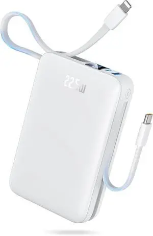 Portable Charger Power Bank - 20000mAh Fast Charging Portable Battery Pack with Built in USB-C(22.5W) and iOS(20W) Output Cables Compatible with iPhone Android Phone etc (1 Pack White)