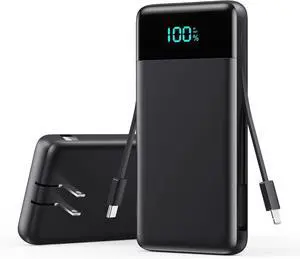 Power Bank 10000mAh Portable Charger with Built in Cables Fast Charging 22.5W USBC in/Out Travel PowerBank Battery Pack for iPhone 16 15 14 13 12 Galaxy S24 A15 Android Phone(1 Pack)