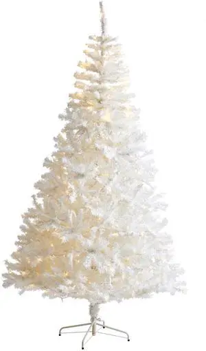 Nearly Natural 8' Slim White Christmas Tree with 400 Lights and 1348 Tips
