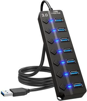 7-Port USB 3.0 Hub, Vertical USB Hub Splitter with RGB Lighting,5Gbps High-Speed Data Transfer and 2FT Extension Cable, Compatible with PC, MacBook, Laptop, PS5, Xbox, Flash Drive, PrinterBrand: AnkerSeries: J7-WF-BK-2FT JoyRekenMax Devices Supported: 127Ports: 1 x USB 3.0, 3 x USB 2.0Model #: 887254816033