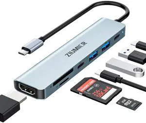 Aluminum 7 in 1 USB Hub USB C Hub with USB 3.0, Multiport USB Splitter Adapter with 5 USB & 2 USBC Ports for MacBook, ipad, Laptop, PS4, Flash Drive, HDD, Xbox, Printer, Mouse, Keyboard, HPLimited time offer, ends 04/22