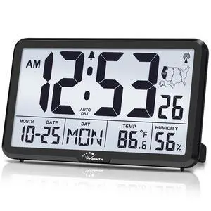 Large Digital Wall Clock Battery Operated with Temperature Date and Day of Week with Alarm | Modern Digital Desk Clock for Office Kitchen Bedroom or Living Room | Black