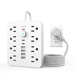Power Strip Surge Protector with 8 Outlets, 4 USB and 2 USB C Ports, 5 Ft Extension Cord, Flat Plug, Wall Mount, Overload Protection Desk USB Charging Station for Home, OfficeWhite
