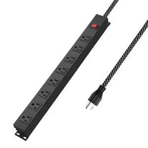 8 Outlet Power Strip - Metal Power Strip with Switch, Wide Spaced Mountable Surge Protector 1200J, 6ft 14Awg Braided Cord, Home Office Industrial Garage Commercial