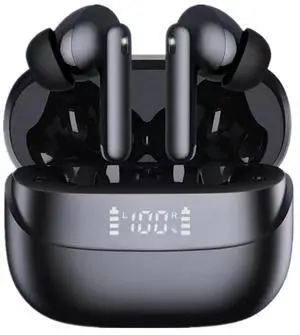 APZXTRK Wireless Earbuds, Bluetooth 5.4 in-Ear Headphones with Touch Control, Digital Display Charging Case, Half in-Ear Design, Water Resistant, Black, 2 Pairs