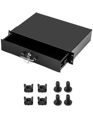 QWORK 2U Rack Mount Drawer Lockable Steel Storage Rack, 2U Drawer Server Cabinet Case for 19" Server Cabinet, Studio & DJ Setup