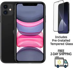 Apple iPhone 11 A2111 (Fully Unlocked) 256GB Black (Grade A) w/ Pre-Installed Tempered Glass