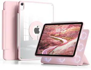 GKABXY Clear Case for iPad Air 11 inch M3/M2(2025/2024), iPad Air 5th/4th Gen(2022/2020) 10.9 inch with Pencil Holder, Detachable Magnetic Rotating Transparent Hard PC Back,Vertical Stand (Pink)