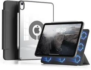 GKABXY Clear Case for iPad Air 11 inch M3/M2(2025/2024), iPad Air 5th/4th Gen(2022/2020) 10.9 inch with Pencil Holder, Detachable Magnetic Rotating Transparent Hard PC Back,Vertical Stand (Black)