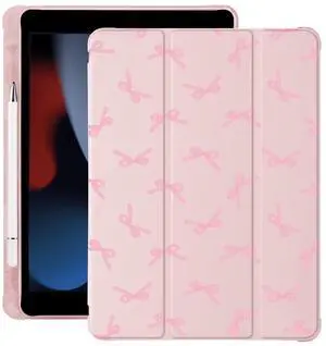 Cute Kawaii Pink Bow for iPad (A16) 11th Generation Case 11 Inch 2025, for iPad 10th Generation Case 10.9 Inch 2022 with Pencil Holder, Auto Sleep/Wake, Pink Leather Soft TPU Back Cover