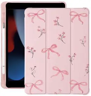 BlHMCASE Cute Ribbon Bow Flower for iPad (A16) 11th Generation Case 11 Inch 2025, for iPad 10th Generation Case 10.9 Inch 2022 with Pencil Holder, Auto Sleep/Wake, Pink Leather Soft TPU Back Cover