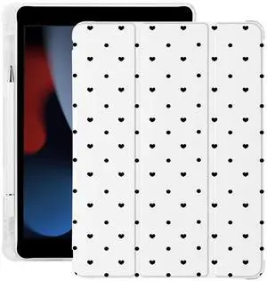 BlHMCASE Cute Polka Dot Heart for iPad (A16) 11th Generation Case 11 Inch 2025, for iPad 10th Generation Case 10.9 Inch 2022 with Pencil Holder, Auto Sleep/Wake, White Leather Soft TPU Back Cover