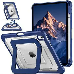 ZoneFoker for iPad A16 Case, iPad 11th/10th Generation 2025/2022 (11 inch/10.9 inch) with [Multi-Angle Metal Stand] / Pencil Holder, Slim Hard Cover for i Pad 11/10 th (Navy Blue/Translucent)