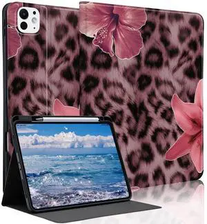Idocolors Pink Leopard Print Florals Case for 10.9" iPad A16 2025/2022(10th/11th Gen) with Pencil Holder, Auto Wake/Sleep Leather Soft TPU Back Cover for Women Girls