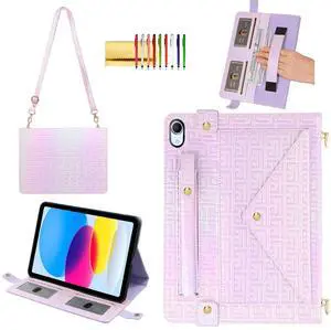 INFILAND Compatible with iPad 10th Generation Case, iPad Case 10th Generation 10.9 Inch, Glitter Leather Cover with Sparkly Crystal Clear Back, Pencil Holder, Anti-Yellowing (Purple Flutter)