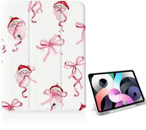 Christmas Kawaii Santa Claus Bow Case for iPad 10th/11th Generation with Pencil Holder,Auto Sleep/Wake White Leather Folded Slim Protective Shockproof Cover Shell for 10.9/11 inch 2022/2025