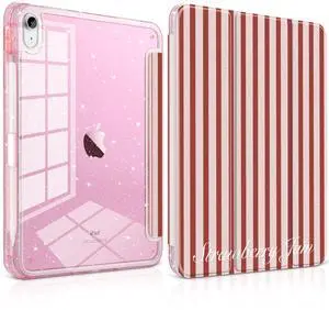 TWOLSKOO for iPad 11th & 10th Gen Case with Pencil Holder, Trifold Stand, Auto Sleep/Wake, Clear Acrylic Back with TPU Bumper, for iPad 11-inch (2025, A16 Chip) & 10.9-inch (2022), Pastel Stripes