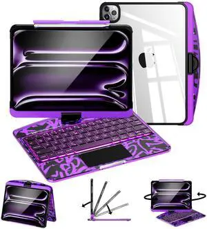 ND NAIDUN Transparent Keyboard Case for iPad 11th A16(2025)/10th(2022),360Rotating,7-Color Backlit Wireless Keyboard with Touchpad,Pencil Holder,Purple