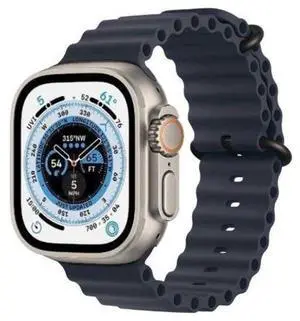 Apple Watch Ultra - 32GB - Cellular + GPS - 49mm - Titanium - Titanium - Midnight - Ocean Band - One Size - Rubber - Good (Grade B)
