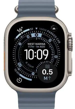 Apple Watch Ultra 3 - 64GB - 49mm - Natural - Titanium - Anchor Blue - Ocean Band - One Size - Polyester + Spandex - Premium