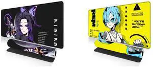 Alpha Fit Anime Gaming Mouse Pad XXL (35.4" x 15.7") - Purple Butterfly Swordswoman - Large Mouse Pad Extended - Extra Large Gaming Mouse Pads Ara Ara Katana Style - 06