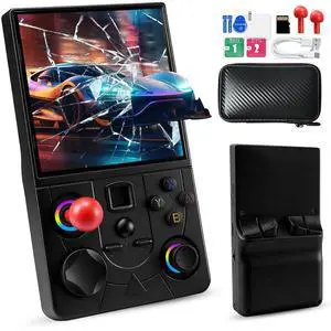 R36MAX Retro Handheld Game Console, 4000mAh Battery with 4 Inch IPS HD Screen, 64GB TF Card Built-in 18,000+ Classic Game Portable Pocket Arcade(Transparent Black)