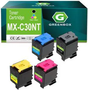 GREENBOX Compatible High Yield MX-C30NT Toner Cartridge Replacement for Sharp MX-C30NT MX-C30NT-B MX-C30NT-C MX-C30NT-M MX-C30NT-Y Toner for MX-C250 C300P C300W C301W C303W Printer (4 Pack)